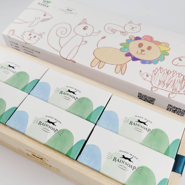 六入小皂松木禮盒(5色礦皂+平安皂)680元限量20組,捐150元給南台中家扶中心六小入松木禮盒