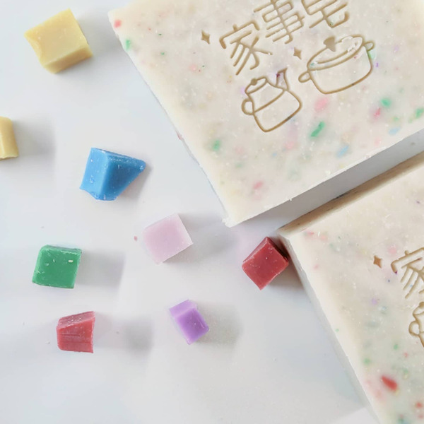 比較肥胖,跟正常版家事皂比起來有比較大顆