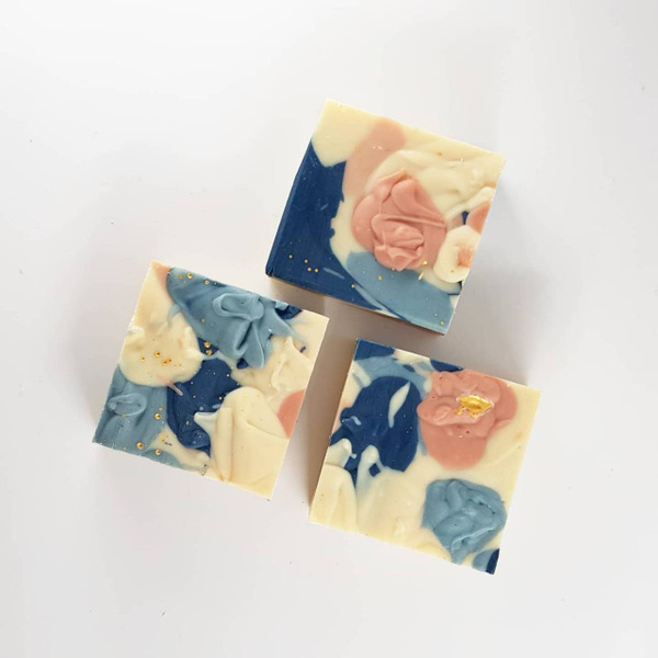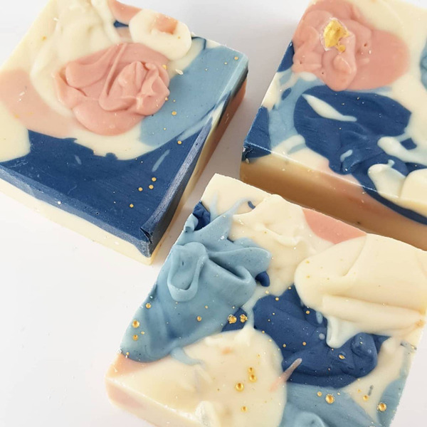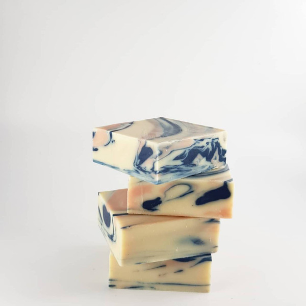 主成份:椰子油、橄欖油、玄米油、芝麻油、老青黛粉、法國粉紅礦泥、紅茶與佛手柑香氛、台灣蠶絲、牛乳、純水、NaOH